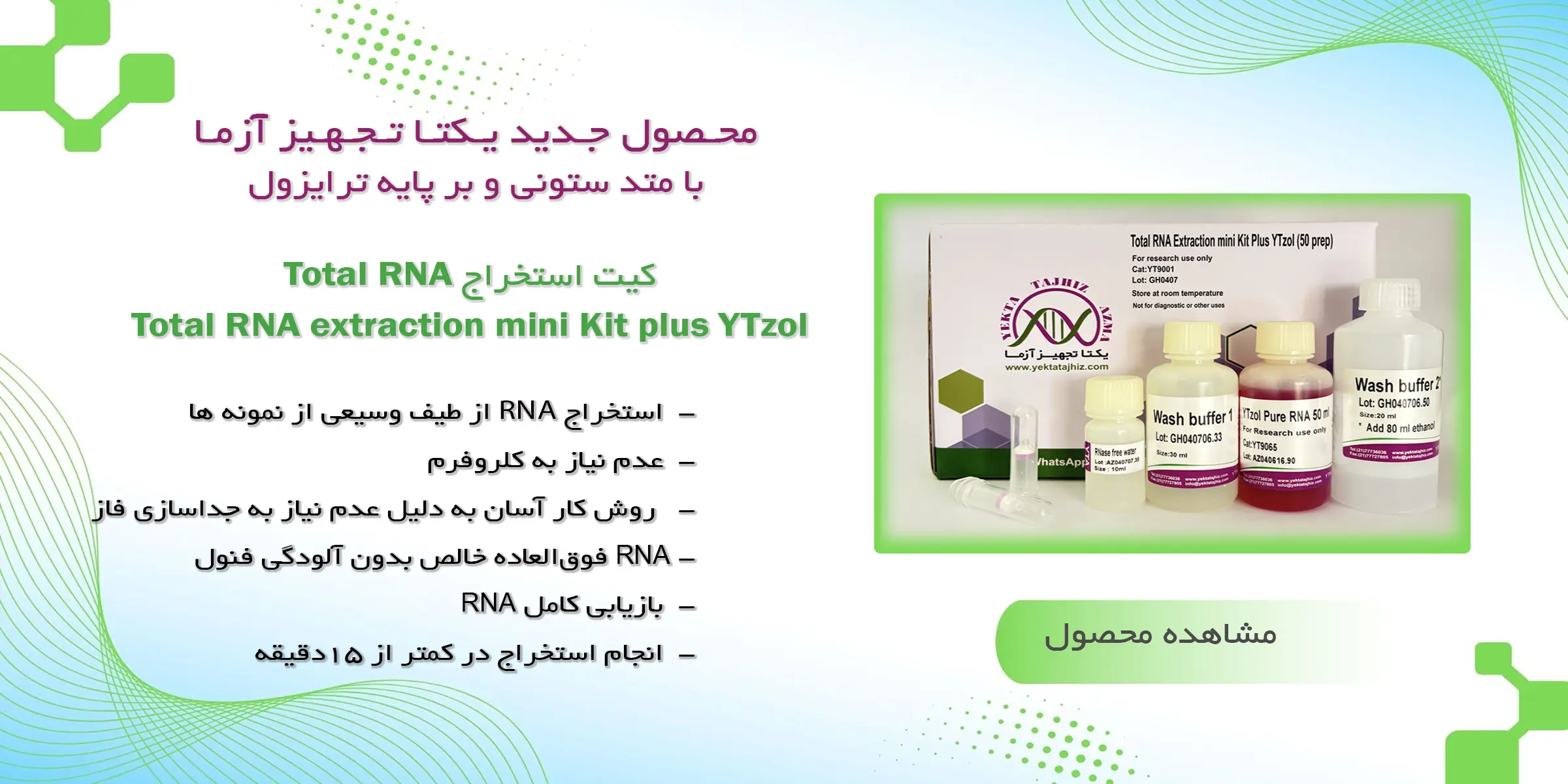 معرفی محصول جدید کیت استخراج Total RNA یکتا تجهیز آزما