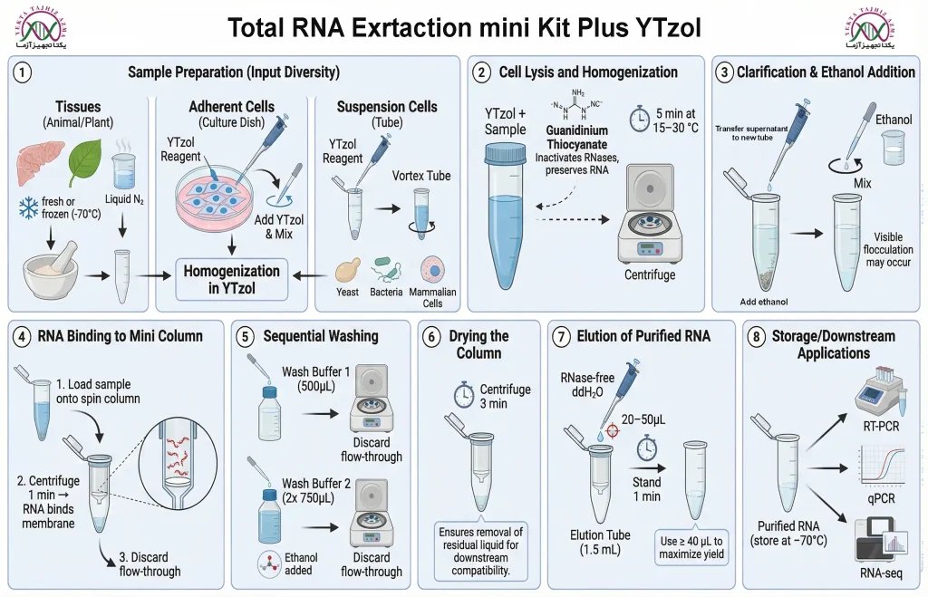 Total RNA Exrtaction mini Kit Plus YTzol یکتا تجهیز آزما نسخه ایرانی: